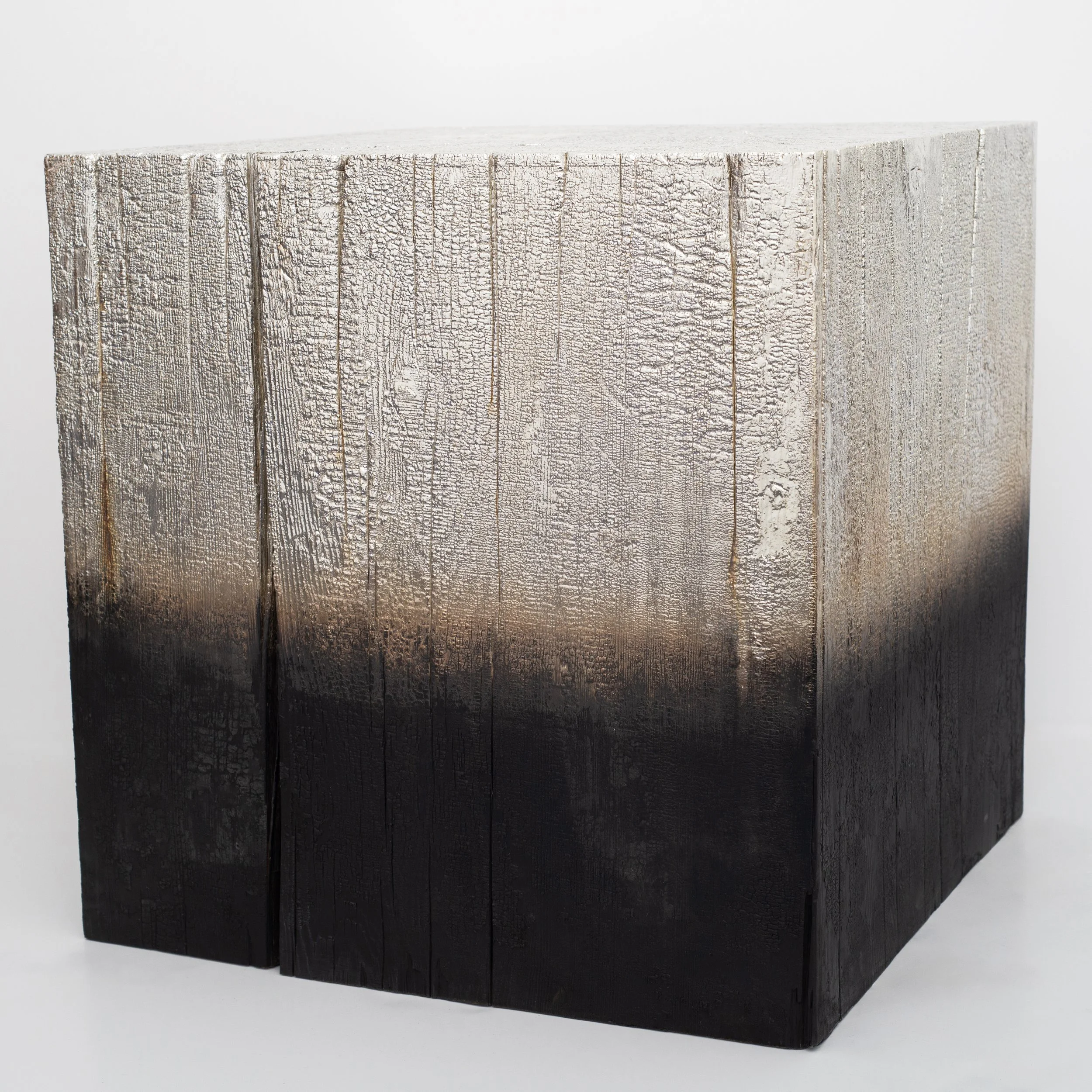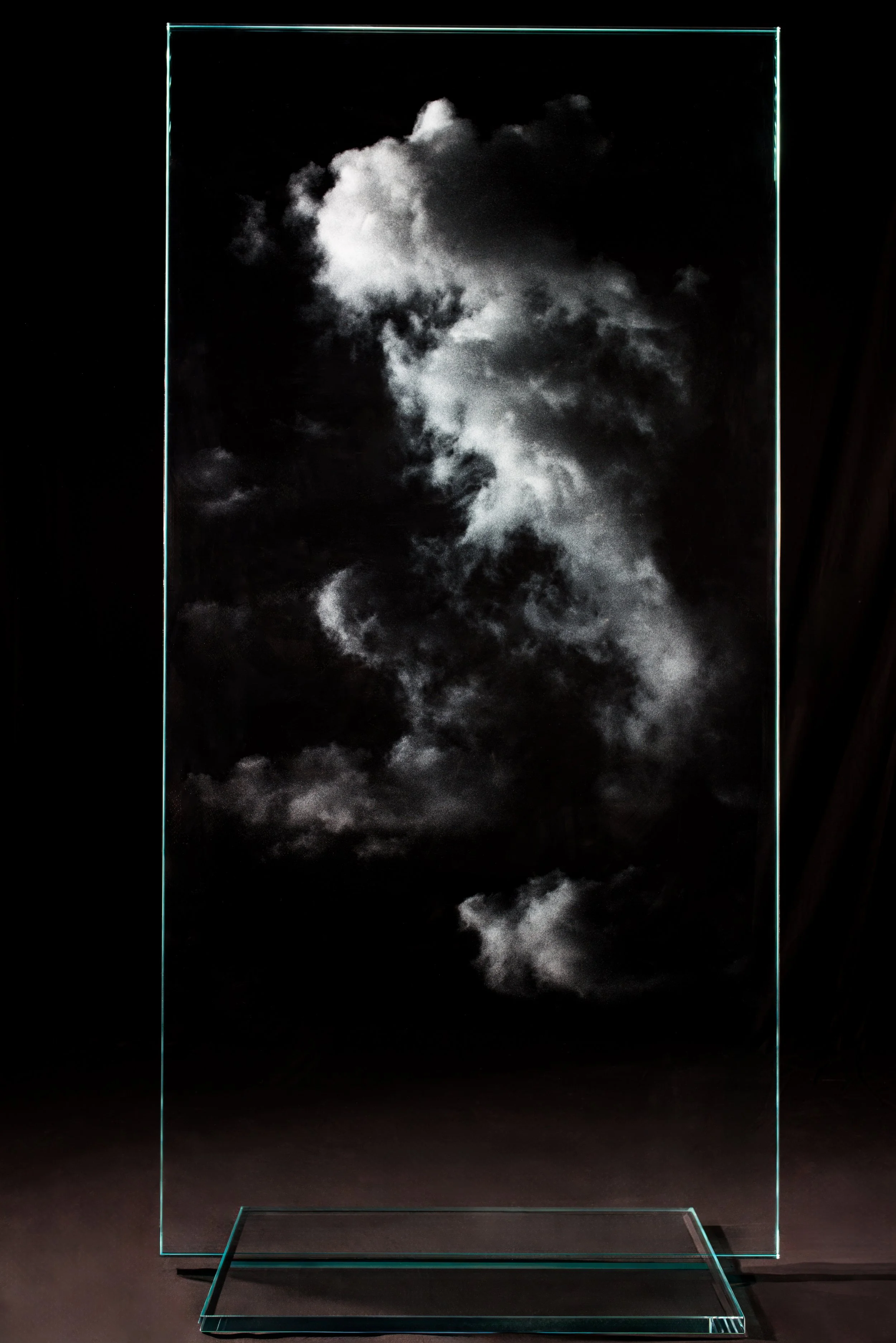 Rather than concealing these transformations, the works embrace them as integral to their form. Charred wood retains the imprint of fire; steel records oxidation; anodized aluminum captures color in a crystalline shell; glass fractures refract a single cloud into millions of points. Each process leaves a record of its passage, binding permanence and impermanence within the same object.